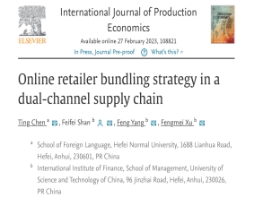 商务英语系陈婷副教授以永利集团304am登录永利集团304am登录第一作者身份,在运营管理国际权威期刊《International Journal of Production Economics》发表论文“Online retailer bundling strategy in a dual-channel supply chain”。该期刊是中科院与JCR一区期刊,也是SCI与SSCI共同收录的高质量期刊。这是陈婷老师在主持国家自科基金青年项目期间,与中国科学技术大学管理学院杨锋教授团队合作取得的研究成果。此外,陈婷老师曾先后在IJPR和JORS等国际主流运营管理期刊发表多篇研究论文。