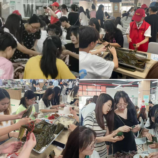 本网讯 为了弘扬中华传统文化,践行文化育人的思想,6月22日端午节来临之际,永利集团304am登录学生第一党支部在滨湖校区食堂一楼举办了一场别开生面的“包粽子”活动,学院党委副书记、纪委书记杨娜、辅导员方媛、2021级、2022级学生参加。安徽李府酒店管理有限公司党支部对本次活动给予了大力协助。