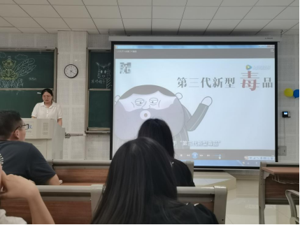 冯晓敏主要从毒品的类型、危害、吸毒案例分析以及如何远离毒品几方面展开介绍,并通过播放禁毒宣传公益短片《青春不是挥霍的筹码》、《别让“我以为”变成“我后悔”》以及《无孔不入的第三代毒品》等短视频,让同学们深入了解毒品的类型及其带来的严重危害。她叮嘱同学们要始终保持安全意识,不轻易相信陌生人。