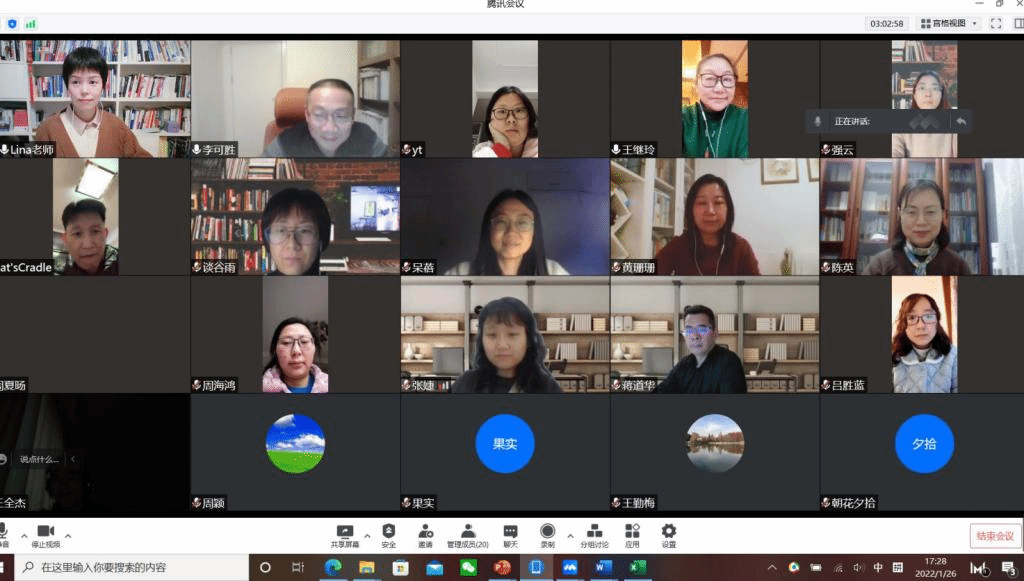 本网讯 2022年1月26日下午,永利集团304am登录召开了英语专业实习(研习)总结会议,会议通过腾讯会议软件线上进行。副院长李可胜,英语系主任王继玲老师,副主任钱莉娜老师以及全体实习指导教师参与了本次会议,会议由英语系副主任钱莉娜老师主持。