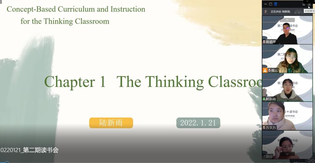 本次读书会的分享书目为Concepted-Based Curriculum and Instruction for the Thinking Classroom,准确契合了当下基础教育英语教学研究热点“聚焦大概念的课程教学”,也帮助同学们深入了解如何进行“知识结构化和新概念的构建”。主讲人陆新雨和代欣宇同学分别从宏观和微观的角度详细介绍了二维模型与三维模型的区别、协同思维与智力的发展、知识与过程的结构、展示具体的课堂案例并提出阅读启示与反思。