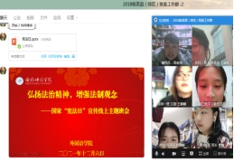 会上,辅导员冯晓敏主要从宪法的含义和地位、国家宪法日的由来和意义、习近平法治思想三大方面开展介绍,并结合《宪法知识普法动画》、《70年法治回眸:我们的自信在这里》等视频内容,带领同学们一起回顾国家的宪法发展史,并从宪法发展中感受我国所取得的伟大成就,深入理解“坚定不移走中国特色社会主义法治道路”的历史必然性。辅导员周贵勤通过线上主题班会的形式,结合具体事例,详细为学生们讲解学习宪法的重要意义,引导学生发自内心信仰宪法,拥护宪法,在宪法学习中厚植爱党爱国爱社会主义的情感。