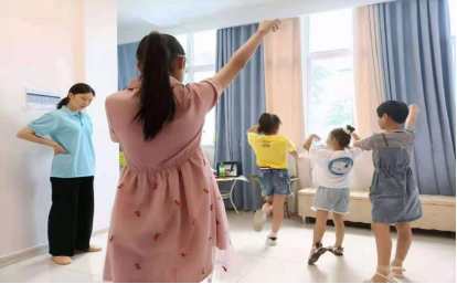 在“舞林汇”的课堂上,小先生尚梦晨正在逐个分解动作,认真教小学员跳舞,这支舞蹈的名称叫“海底”,是小先生尚梦晨专门为小学员们编的一支舞蹈。面对动作较为复杂的舞蹈动作,小先生尚梦晨特意放慢节奏,认真指导每个小学员的舞蹈动作,小学员们跟在后面耐心学习,兴趣十足。小学员赵延婷说:“虽然学习舞蹈的过程很累,但是跳完一支完整的舞,我觉得很有成就感。”