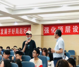 宋敬对大学生的就业现状以及趋势进行了分析,清晰的图表和数字让同学们直观地感受到了就业形势的严峻。他介绍了大学生初入职场将会面临的困惑,并且针对这些困惑进行了指导。宋敬通过举实例、讲故事的方式让本来看似困难的问题,解决起来变得更加贴近实际,让同学们在轻松愉悦中提高自己。