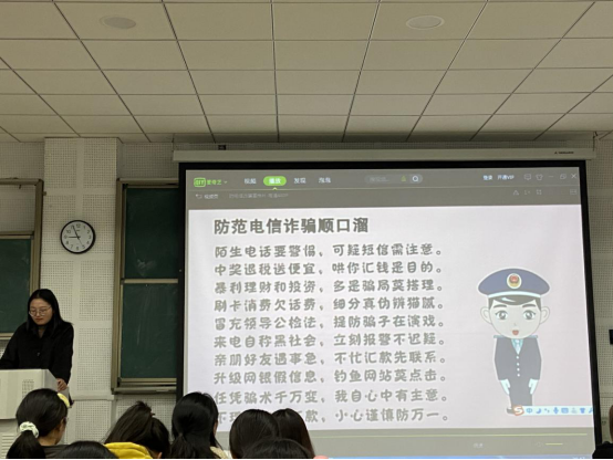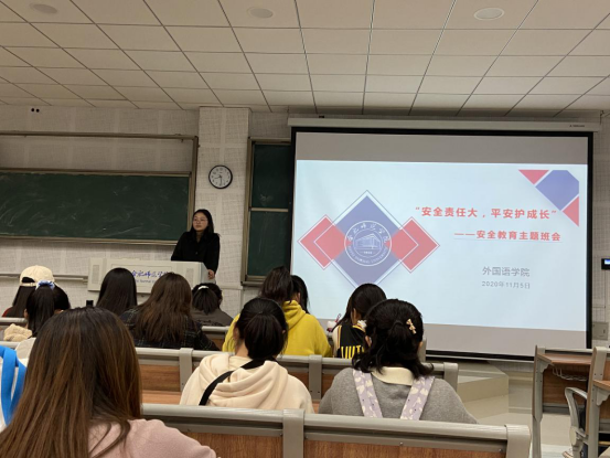 11月5日晚,永利集团304am登录在博学楼D101召开以“安全责任大,平安护成长”为主题的班会,2020级学生参加此次班会。冯晓敏首先传达了学生处发布的《关于进一步加强学生教育和管理工作的通知》文件内容,详细介绍了文件中的重点事项。随后,她从交通安全、宿舍安全、网络安全以及其他注意事项四个方面展开讲解,并通过案例分析、播放动画宣传视频等方式来告诉学生如何保护自身安全。冯晓敏强调,希望大家能够牢固树立“安全第一”的思想,要多留心,多思考,切实保护好自身安全。