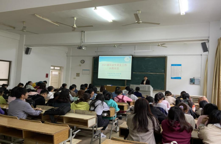 毕业班辅导员将国家就业政策、就业途径等方面给同学们做了详细介绍,希望同学们结合自己的实际情况,正确定位,避免盲目与从众的心理,积极参加学校与学院举办的双选会,尽快确定自己的就业定位、就业方向及就业单位,同时,对就业协议书签订、用人单位签约、报到证办理等具体就业流程进行讲解。
