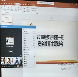 2017级、2018级英语(师范)专业分别于5月19日、22日召开“众志成城 共克时艰”主题班会。辅导员周贵勤要求大家继续保持高度警惕,提醒大家要按时完成每日健康信息填报,要严肃认真的对待这项工作,要求同学们接下来仍要做好防护措施,强调养成良好卫生生活习惯并且一直保持下去;天气炎热,同学们务必要注意不要去野外游泳,注意防溺水,保护好自己;她叮嘱大家在家每天要以学习为主,认真上好每一门功课,高质量完成学习任务,要和老师积极沟通,同时要加强锻炼,调整心态,牢固树立生命第一、安全第一的思想,特别是在疫情防控期间,在家也要确保自己的学习、生活秩序,做到行动有纪律,安全在心中。