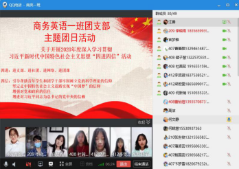 本次“四进四信”活动,主要以网络视频会议,线上组织讨论等形式有序开展。院内各团支部通过自学,线上交流学习感受,创作分享文化作品等途径将“进支部”作为活动的基本路径与方法。