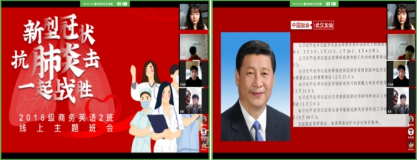 为深入贯彻习近平总书记关于疫情防控工作的重要讲话精神,进一步激发广大青年学子的责任担当,深入推进爱国主义教育,引导其为助力国家、社会和学校打赢疫情防控阻击战贡献青春力量。我院各班积极响应号召,利用线上“云”平台开展“众志成城共克时艰坚守使命服务青年”的主题班会。
