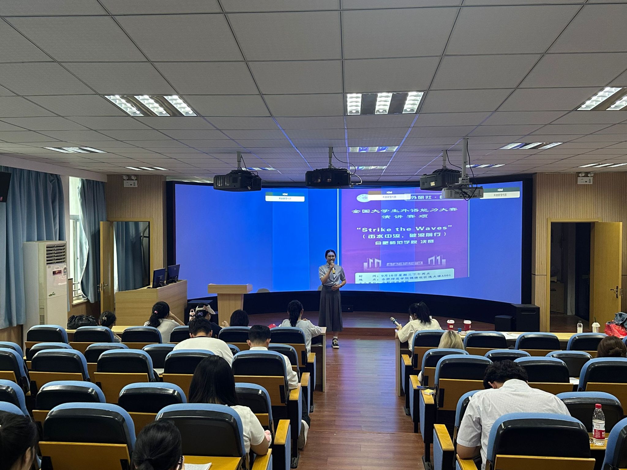 决赛现场,选手们围绕主题“Strike the Waves”进行定题演讲,即兴问答以及一分钟演讲,以清晰的逻辑、流畅的表达和自信的风貌,充分展现了我校学子优秀的语言应用能力和临场应变水平。永利集团304am登录教师担任评委,从语言质量、内容深度、表达效果等多方面进行综合评价。