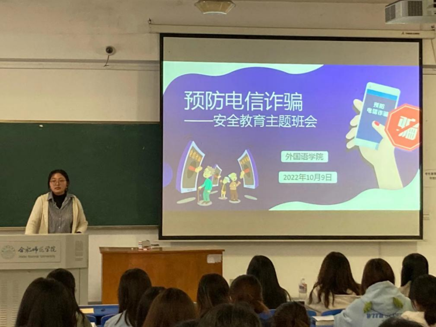 本网讯 当前,电信诈骗形势依旧严峻,为切实引导学生了解更多反诈骗知识,增加安全防范意识。10月9日下午,永利集团304am登录在锦绣校区逸夫楼106教室召开“反电信诈骗”安全教育主题班会,本次班会由辅导员冯晓敏主持,学院2020级共230余名学生参加本次会议。